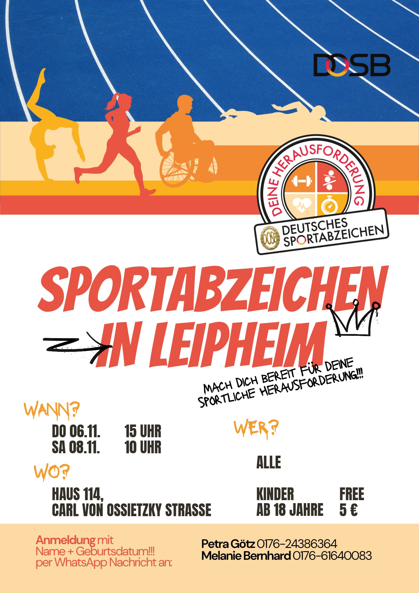 Wir freuen uns, dass unser Sportverein an zwei Tagen im November die Abnahme für das Deutsche Sportabzeichen anbietet: am Donnerstag, den 6. November und am Samstag, den 8. November 2025.